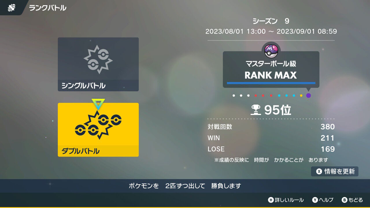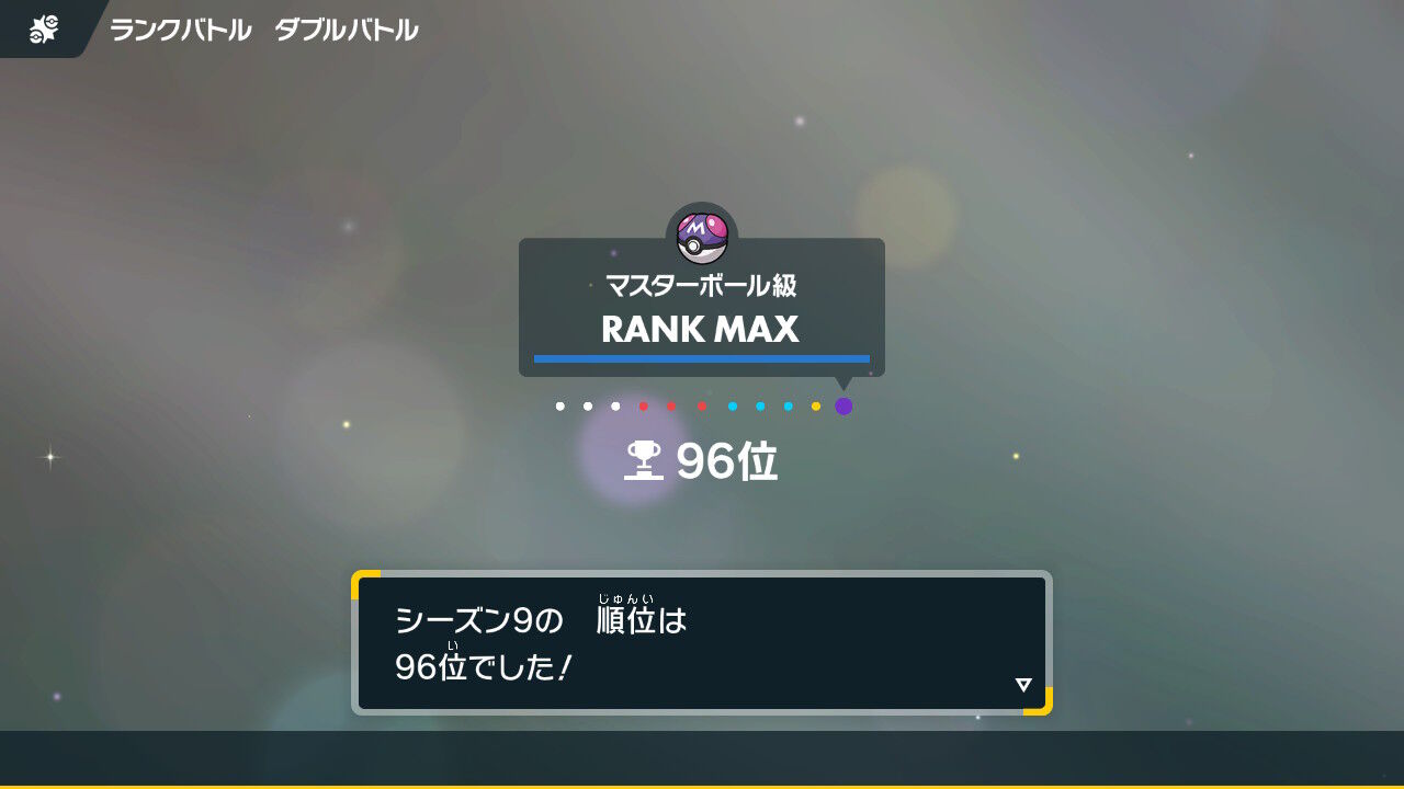 ポケモンの対人戦をプレイして10年程経ちましたが初めて最終2桁及びレート1900を取ることが出来て嬉しいです