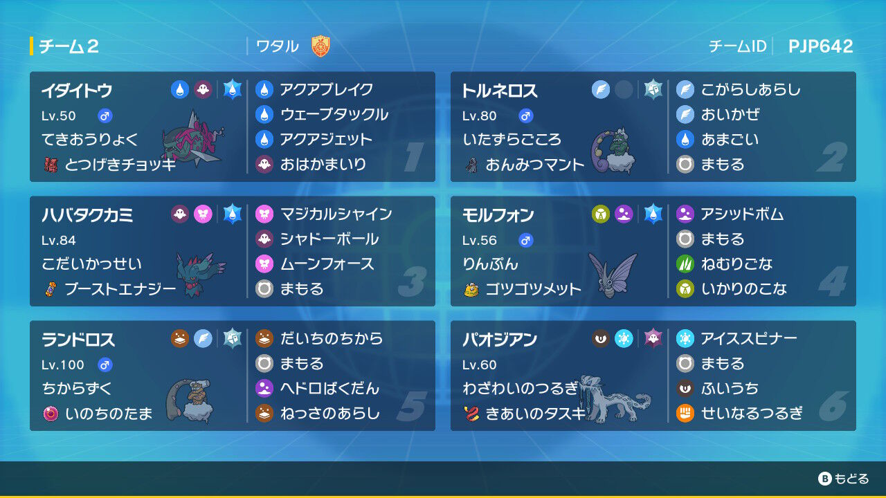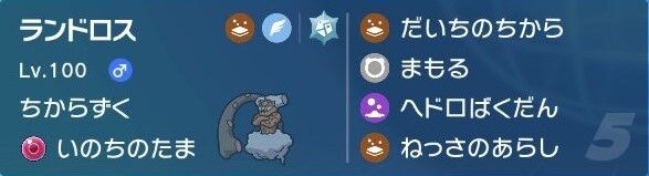 トルネロスとモルフォンのどちらかを初手選出することが多いためにヒスイウインディや霊獣ランドロスの「いわなだれ」及び鋼タイプ全般が重くこれに対抗できるポケモンとして化身ランドロスを採用