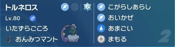 相手トルネロスの対抗は勿論相手の構築が低速ではないかつトルネロスがいないというような場合は一方的に素早さで有利を取ることが出来る強力なポケモンです