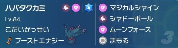 素早さは無振りの155であるため、最速で素早さ156であるモルフォンの「アシッドボム」の後に行動でき、本来ハバタクカミが一撃で倒せないようなモロバレルやクレセリア、耐久振りサンダー等の行動されると厄介なポケモンを先制して倒すことが出来ます